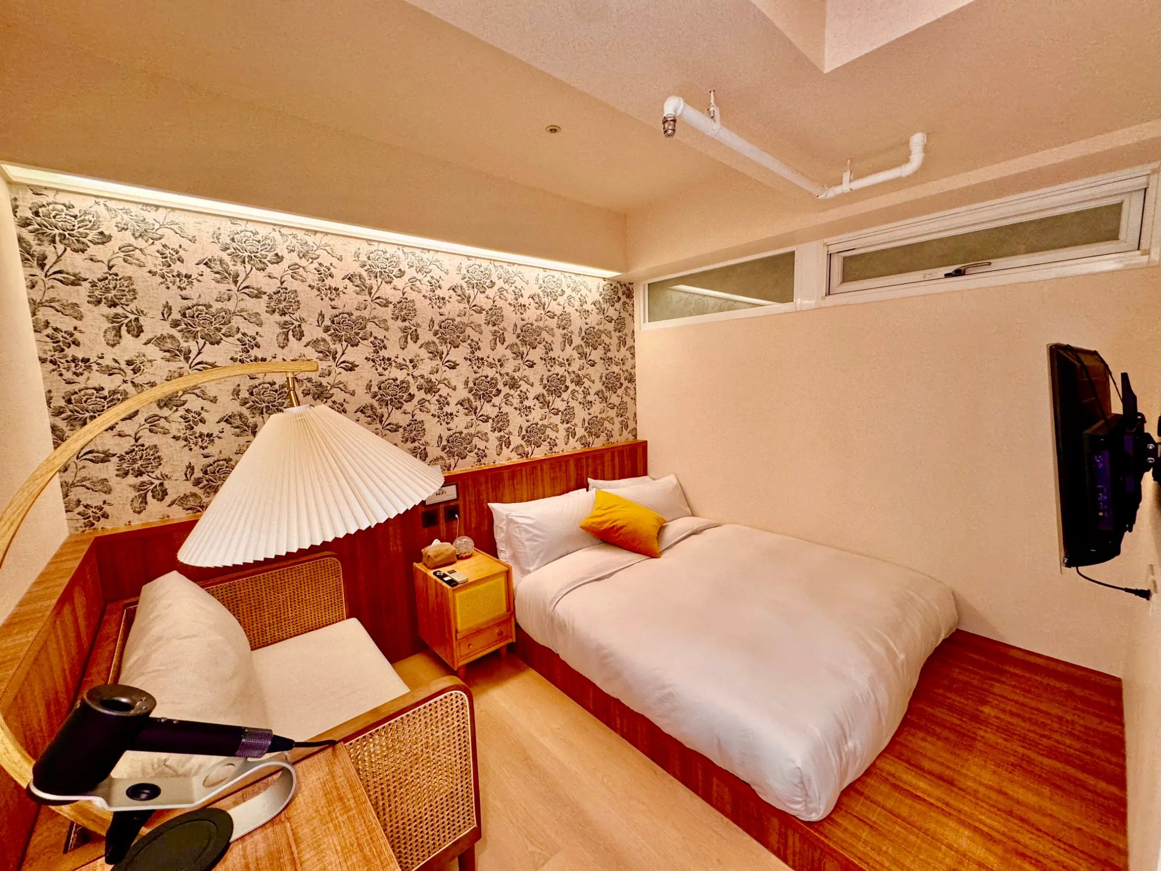我們的雙人房設計簡約舒適,配有一張雙人床,空調、電視、書桌及迷你冰箱,為您提供一個舒適的住宿體驗。房內擁有獨立衛浴設施,配備高品質沐浴用品,讓您在私密空間中享受放鬆的時光,適合尋求舒適和便利的旅客。