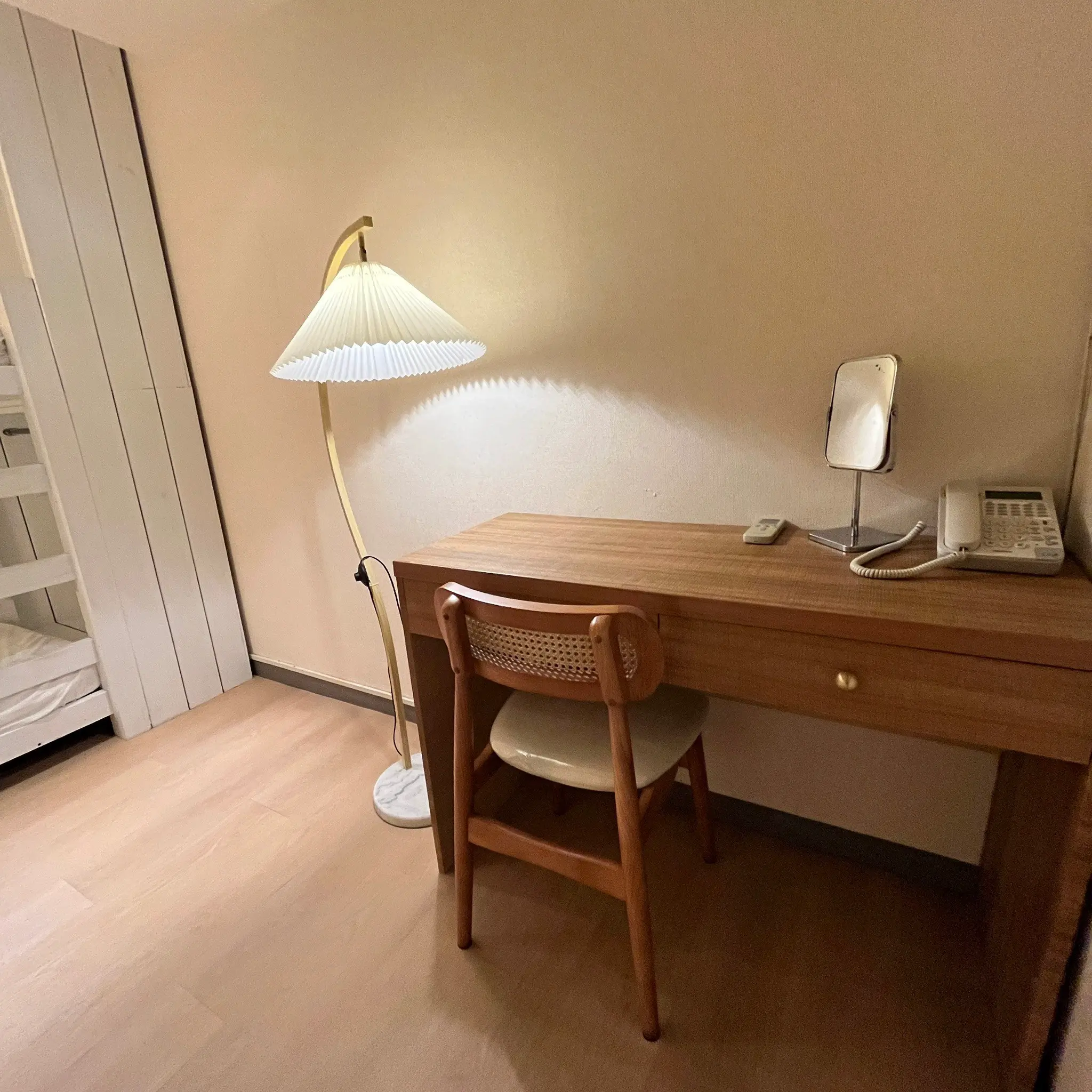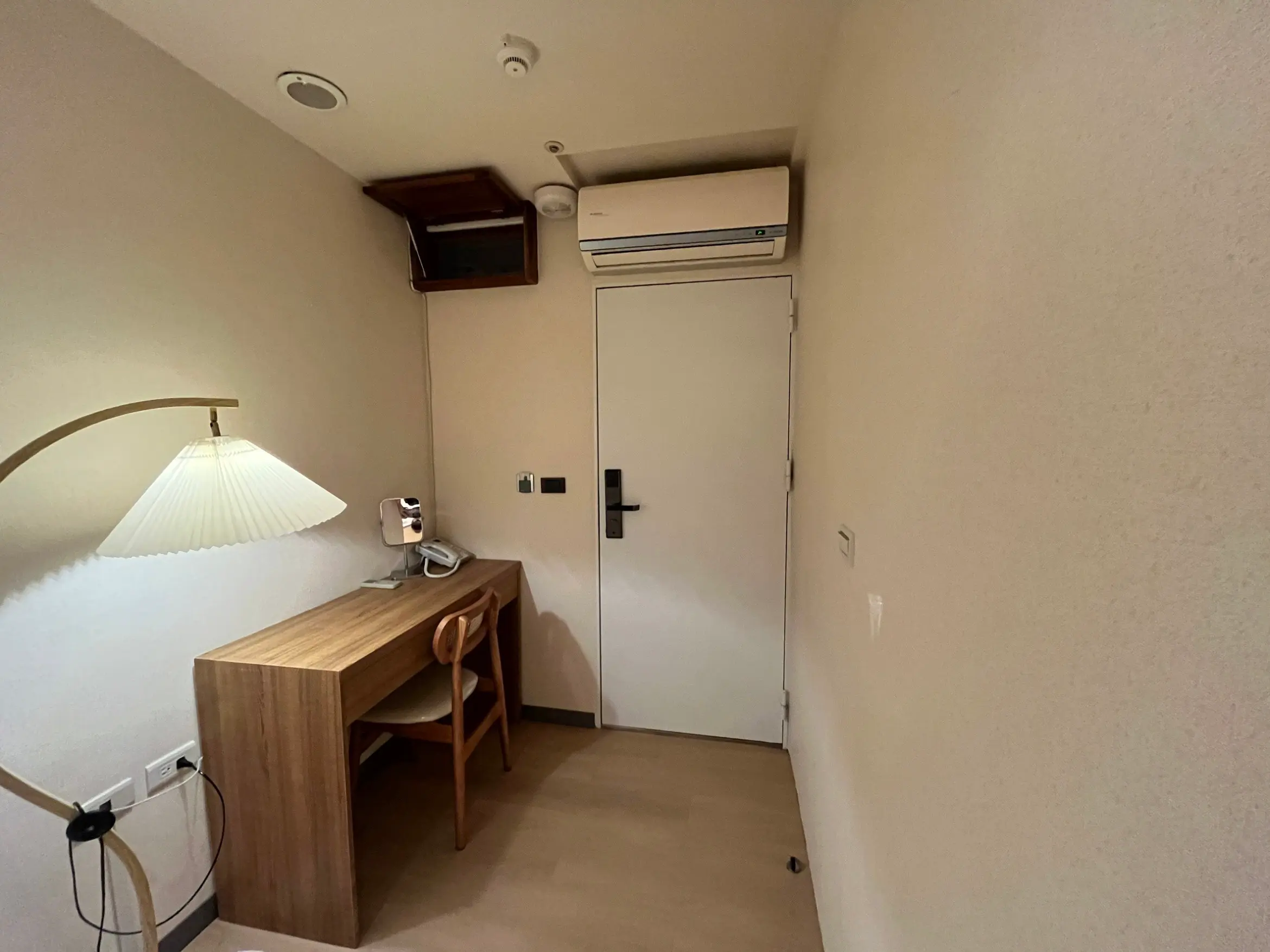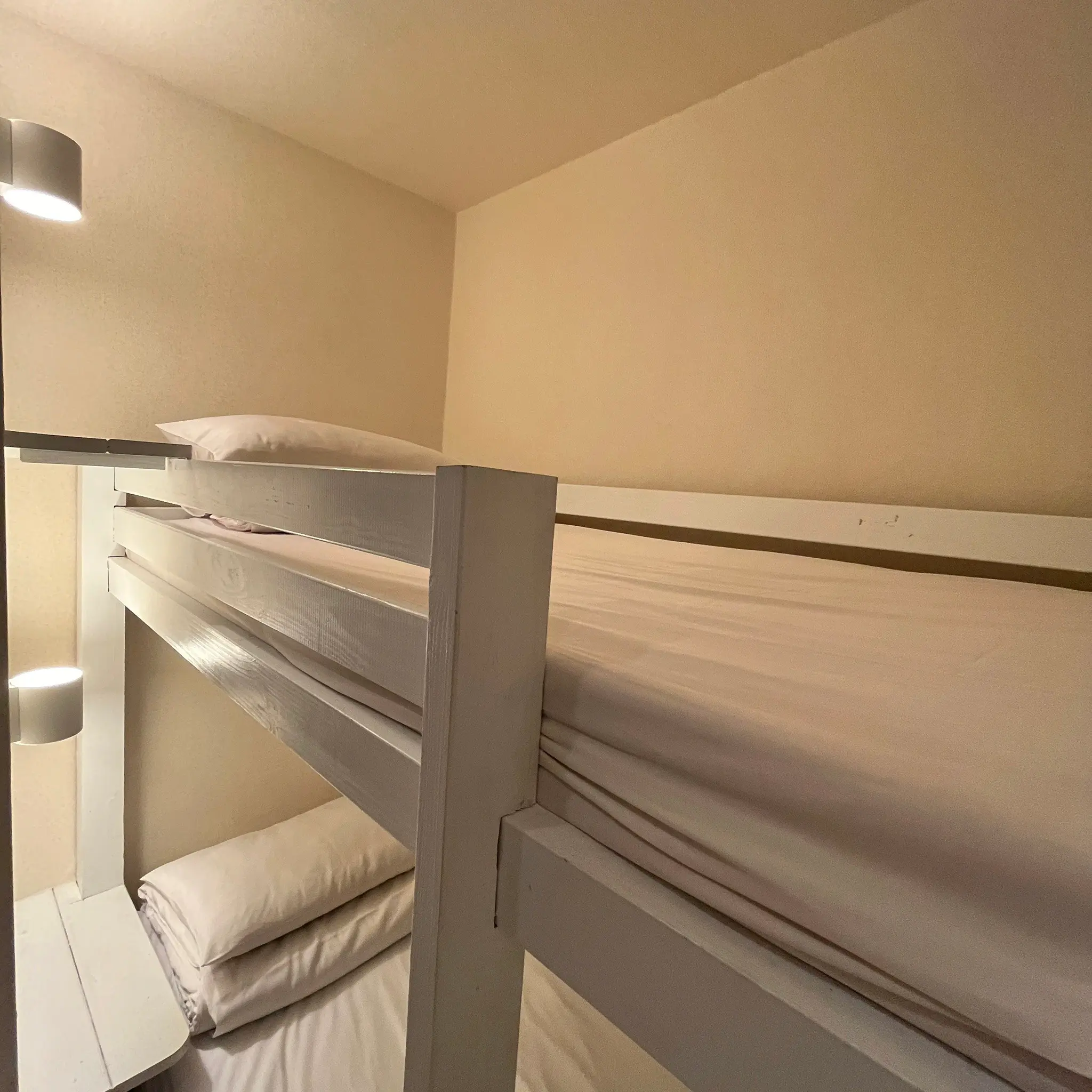 雙床房(上下鋪)適合朋友或預算型間雖旅客入住。房無對外窗,但設計簡約舒適,配有閱讀燈與插座。衛浴為共用設施,並由清潔人員每日定時打掃,確保整潔與衛生。此房型為尋求實惠又實用住宿選擇的理想之選。